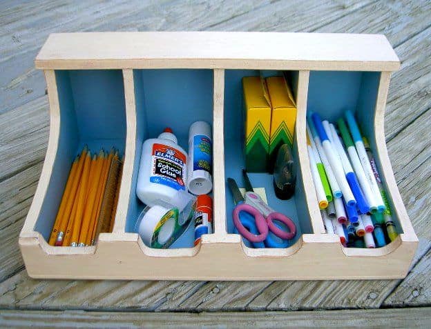 Do you find that your kitchen drawer or desk drawer has turned into a junk drawer? Jaime at JaimeCostiglio has created a simple storage box that can be used virtually anywhere you need an organizational make-over. The original storage box was designed to store flatware, but it can also be at home in an office, in a child’s room or even in the bathroom as a cosmetics holder.