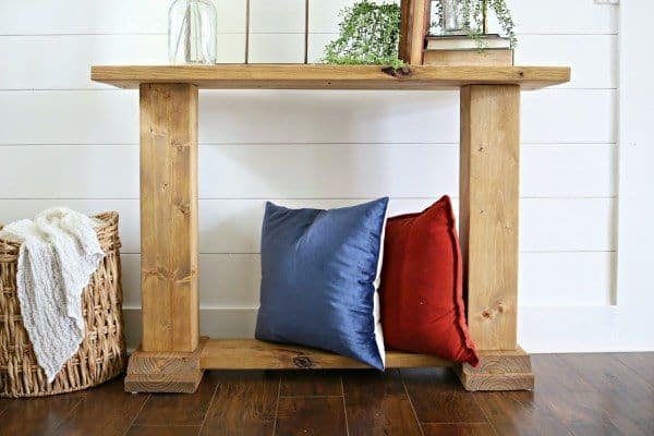For a lot of us, when we walk in the front door, we really have nowhere to throw our keys, our mail, or our purse. Corey at Sawdust2Stitches has come up with a plan to build a trestle style entry table that would fit most narrow entryways.