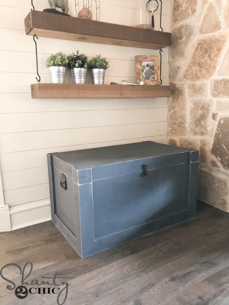Not only do they provide a step-by-step tutorial and a video for creating this functional trunk, they also provide free printable plans to construct this decorative and serviceable piece of furniture. The real fun is in selecting the paint, hardware, and trim. These three components offer you the opportunity to let your imagination guide you to creating a truly unique piece that reflects your own design concept. Ashley and Whitney created a farmhouse look using chalk paint with a minimum of decorative trim as well as sturdy and durable hardware.