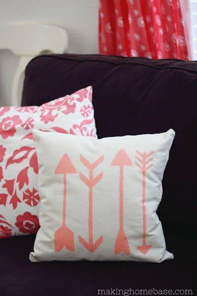 Have you noticed the decorating trend that uses arrows as the main focus? Chelsea from makinghomebase offers a tutorial on how to create a stenciled throw pillow using arrows as the theme.