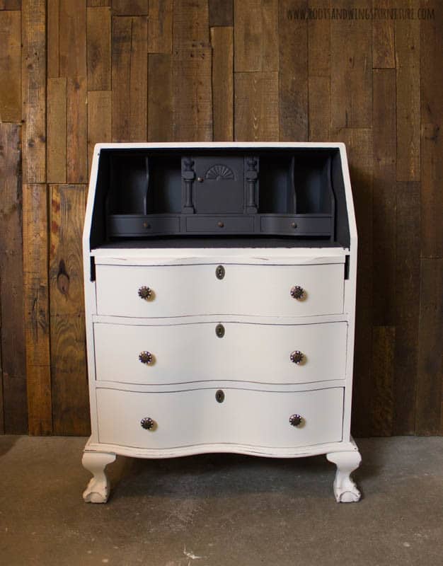 Painting furniture can be a scary proposition for most of us. Painting your furniture doesn’t have to mean ruining a perfectly good piece by the dreaded bleed-through. Jenni explains exactly how to apply both the paint you choose as well as a stain blocker to get a smooth perfectly consistent color for your piece. Painting the inside of a piece such as this secretary is just as important as painting the outside since it will be exposed for all to see.