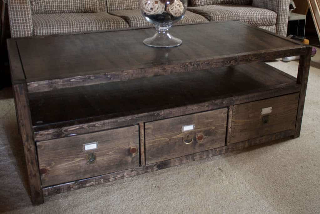 A coffee table in front of a couch is a pretty standard piece of furniture, but this one is a DIY project with the added benefit of storage drawers built right in making it practical as well as beautiful. Georgia from Morelikehome shares her plans and design for this rustic piece.